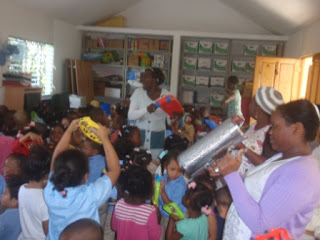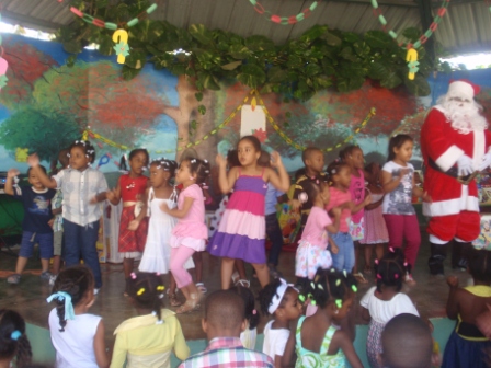 Los chiquitines, cumpliendo con un encargo de Santa Claus, practicaron los villancicos aprendidos, en un bulloso aguinaldo por todo el recinto, buscando los primeros dulces de la Navidad.